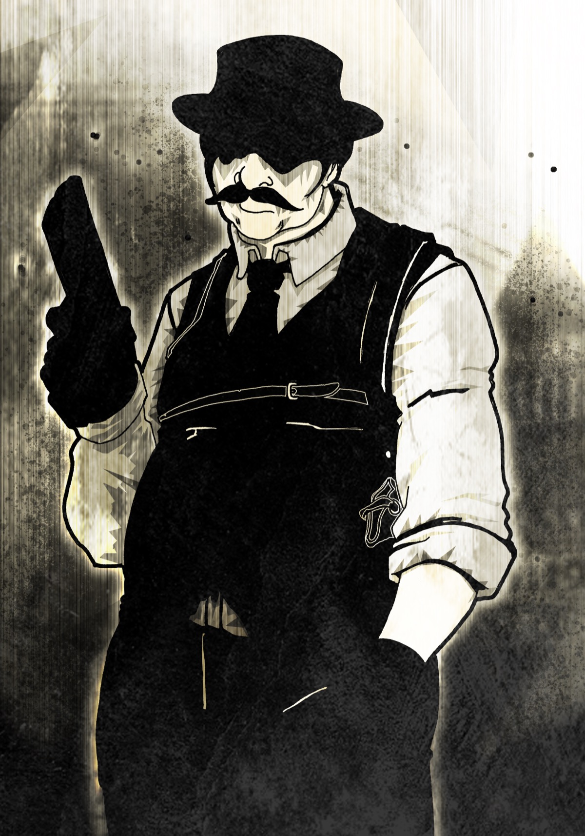 | John VanHuys, Esq. | Homme elance, long manteau sombre, chapeau plat, gilet clair, cravate | Heritier d'une fortune hollandaise, 30 ans. Celibataire, riche mais totalement inadapte a Limehouse. Style dandy. |