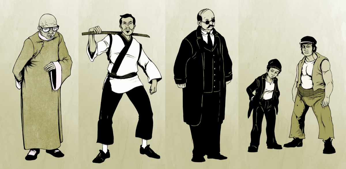 | 1 | Vieil homme, robe chinoise jaune/kaki, lunettes, crane chauve, couperet a la main | Ancien ministre Qing / figure d'autorite chinoise | Pourrait etre lie au "Mandarin Quong" ou un personnage de haut rang dans la communaute |