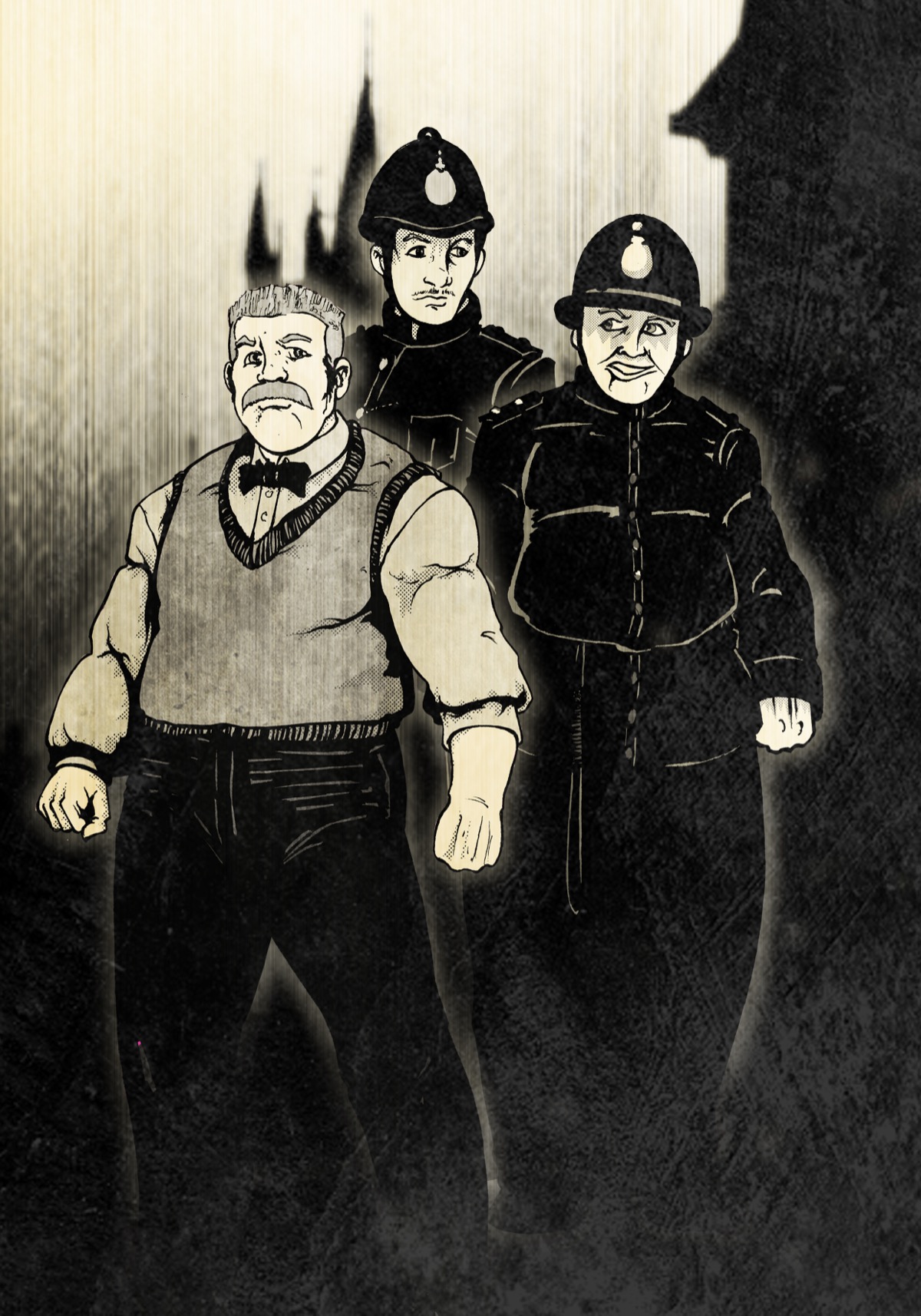 Membres visibles : Inspector Kerry (gilet, noeud papillon), Constable Durham (uniforme), un bobby senior (plus age, corpulent).